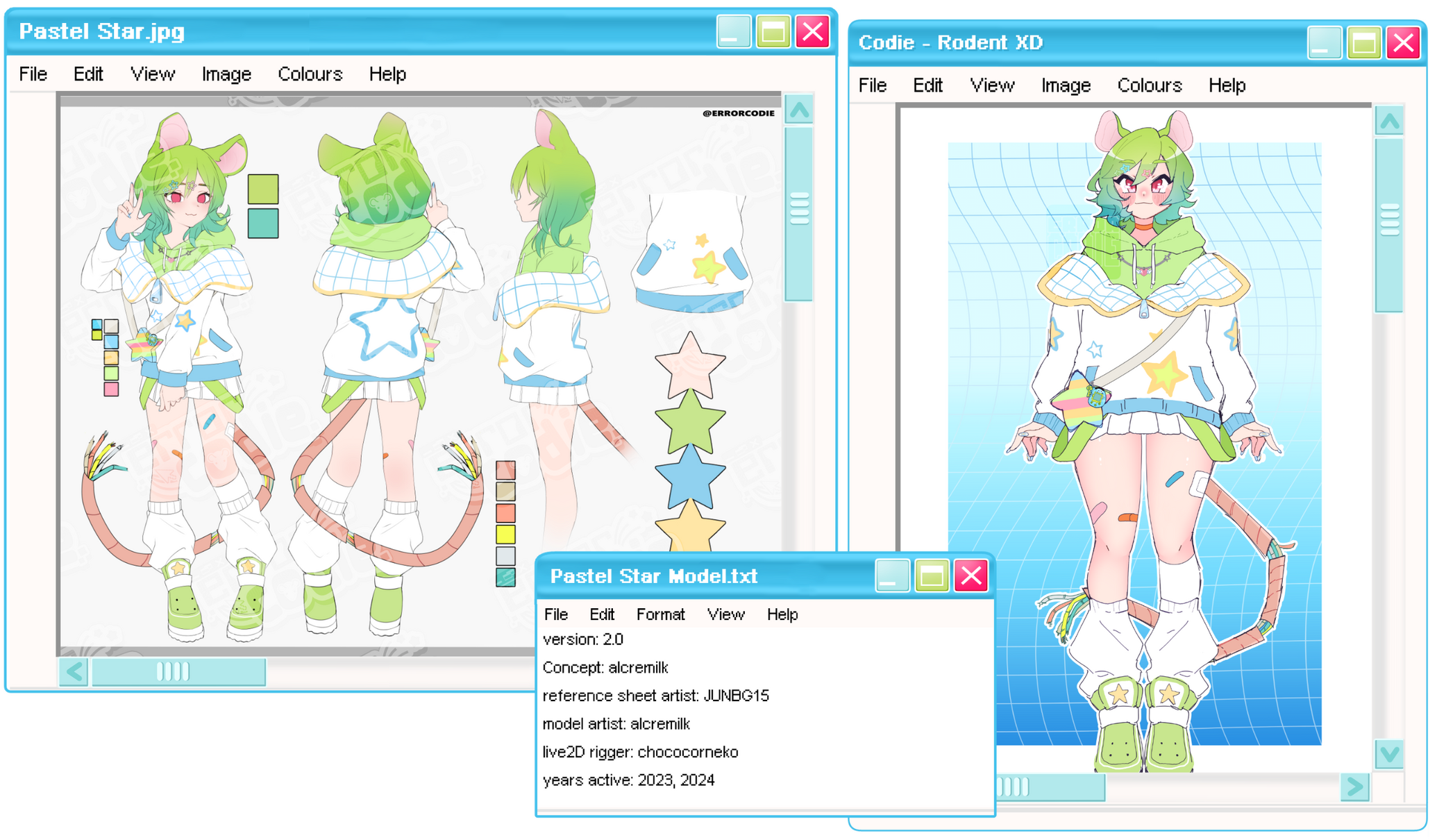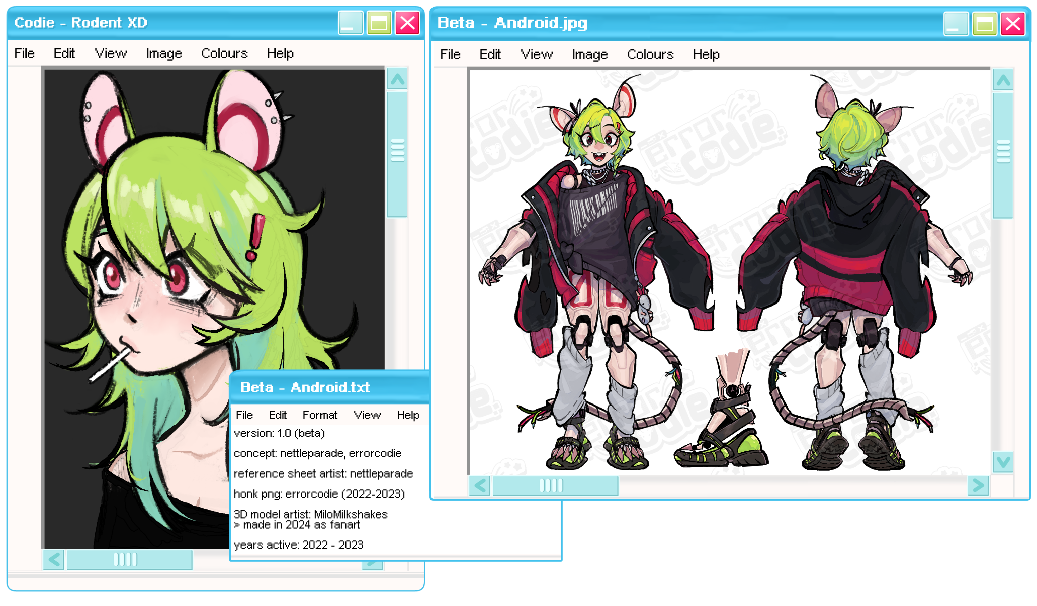 Rorii (formerly Codie/errorcodie) ☆ Nonbinary ☆ She/Her/They/ThemIndependent digital artist & Twitch streamer based in Australia. BCA Visual Effects & Entertainment Design.Y2K / Frutiger Aero / WebcoreFrequent stream categories include Art, Just Chatting, FFXIV Online, Monster Hunter (various titles), Pokemon (various titles) & other 2000's character platformers.